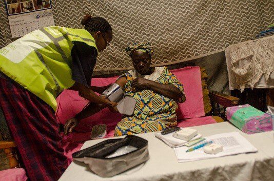 aphrc.orgA Community Health Worker checks blood pressure of a slum resident in her home. Out of over 4000 screened by door to door visits, about 1000 were found with raised blood pressure and referred to receive treatment at a Cardiovascular disease clinic set up by the SCALE UP project